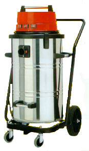 เครื่องดูดฝุ่น ดูดน้ำ อุตสาหกรรม ที่ทนทาน ตัวถังทำจากพลาสติกโพลีพรอพพีลีน ความจุ 90 ลิตร พร้อมด้วยมอเตอร์ระบบสองใบพัด 2 ตัว ตัวละ 1200 วัตต์ ตัวถังของเครื่องต่อเนื่องกับท่อน้ำเพื่อถ่ายเทน้ำเสียออกจากถังน้ำ โดยไม่จำเป็นต้องย้ายหัวมอเตอร์ และยกถังน้ำ